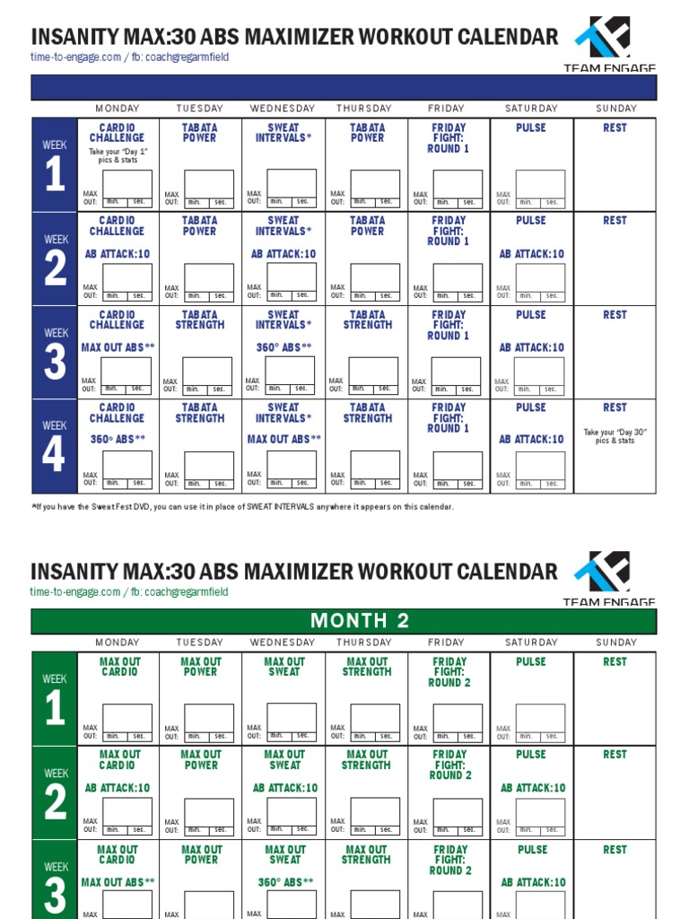 Insanity Max 30 Calendar Pdf. Insanity Max 30 Workout Calendar Pdf. Touch device users explore by touch or with swipe gestures. INSANITY Max 30 Calendar and Schedule Download Whether you are doing the regular INSANITY Max 30 calendar or the Ab Maximizer schedule this print out will work for you.