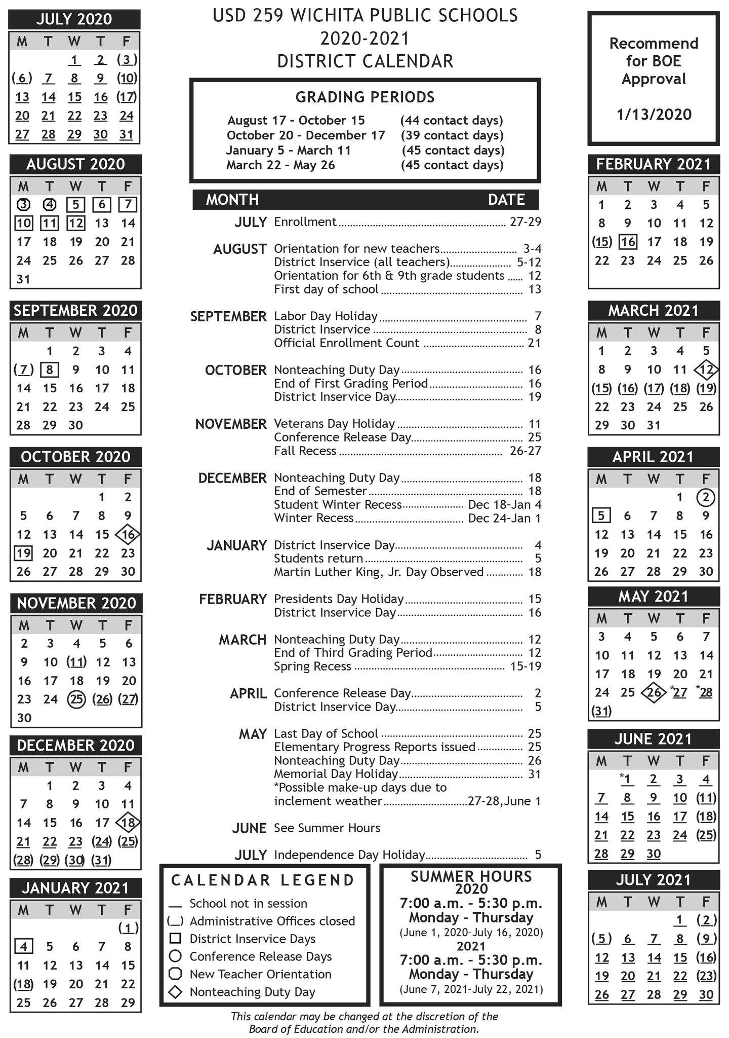 Wichita Public Schools On Twitter The Board Has Approved The 2020 21 School District Calendar With Aug 13 As The First Day Of School For All Students And May 25 As The Last