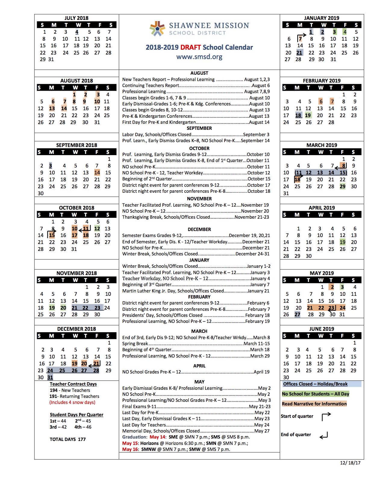 Shawnee Mission Post On Twitter Here S The 2018 19 Smsd Calendar Approved By The Board Of Education Tonight